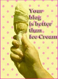 Det är dags att ge utmärkelsen vidare vidare. Och det är inte helt enkelt. Jag läser en del bloggar och de inspirerar mig på olika sätt… efter en del diskussioner med mig själv så tycker jag att dessa bloggar/bloggare är better than ice cream: