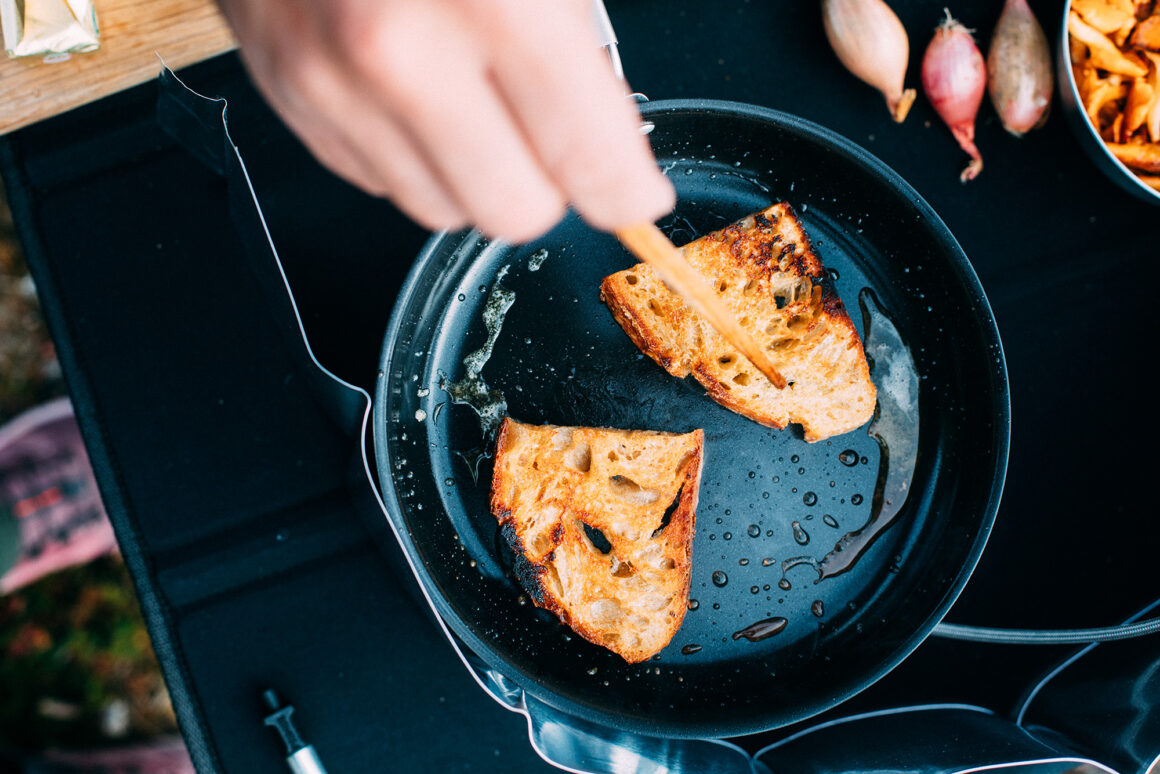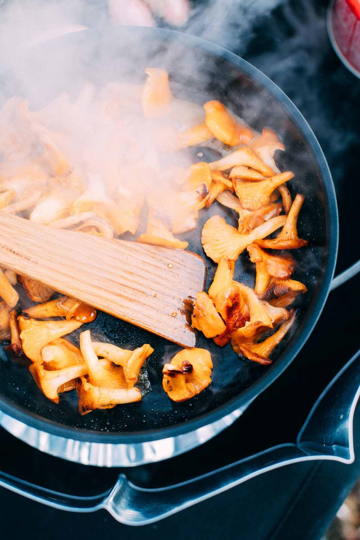 Spara tipset med smörstekt surdegsbröd med kantarell och Kalixlöjrom till bra tillfälle inom snar framtid. Älskar kontrasterna i enkla men lyxiga råvaror på en enkel men lyxig plats. Ett fjäll, en skog, ett vindskydd.