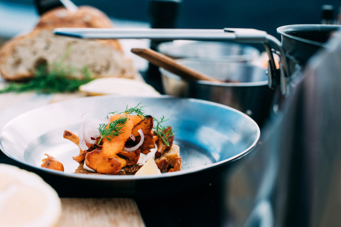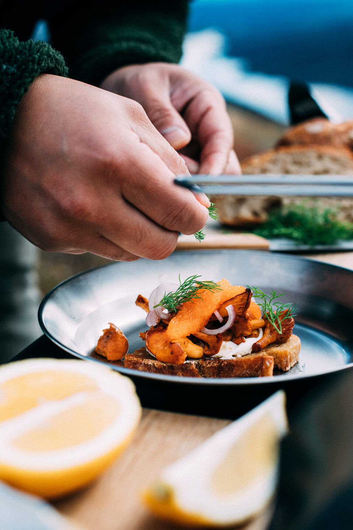 Enkel lyxlunch var temat på lunchen, så med utsikt över höstfjäll och en mörk älv skulle det snart serveras smörstekt surdegstoast med kantarell och Kalixlöjrom. Vem vill inte ha det såhär en onsdag tidigt i oktober mitt i livet? Jag vill!