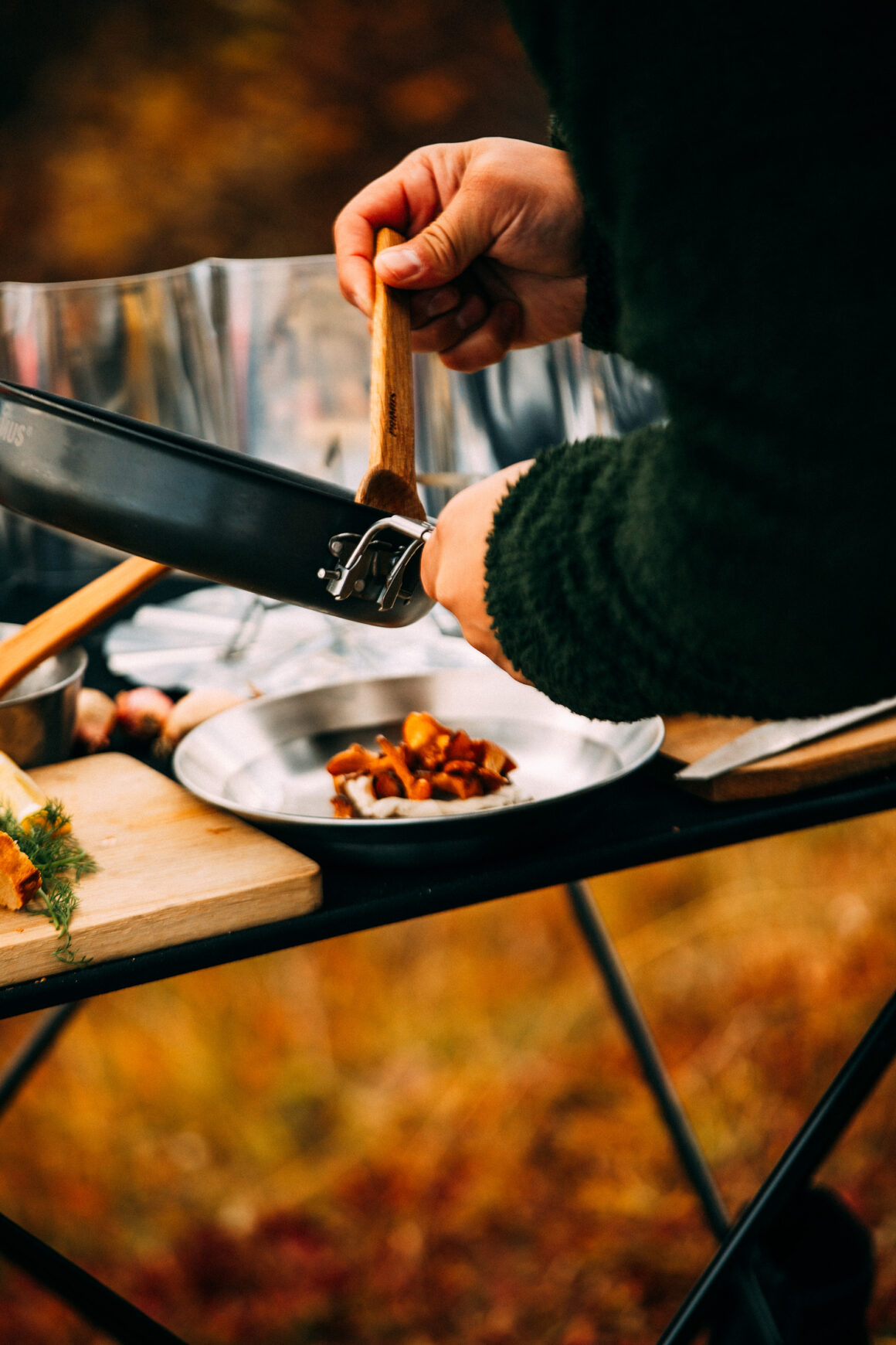 ✅ Stekpanna och stekspade var det enda som egentligen behövdes. Jag har stekpannor och kastruller för eld (funkar även för gas) men också för gas (som inte funkar för eld). Litech är för gas och är enkel att använda pga saker fastnar inte. Eftersom vi preppade maten på plats där på fjället så hade vi ett prep set och ett cutting set också. Primus egna knivar är bra vid dessa tillfällen eftersom de har tunt blad = perfekt att skära löken tunt, och skydd så att man kan packa ner dem säkert i ryggsäcken.