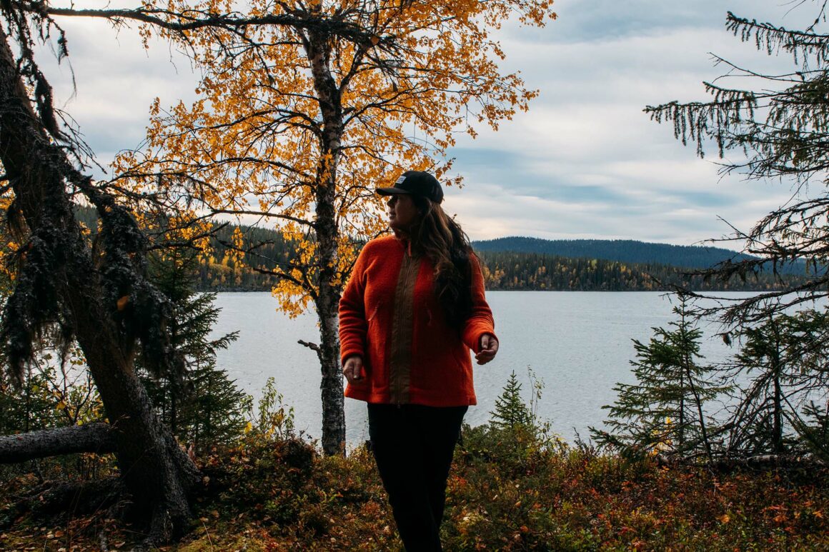 Härlig färg på jackan. Den matchar verkligen naturen. Kände ett väldigt starkt sug att själv shoppa en orange jacka. Underbart ni haft det i den där lilla kåtan. Närhet till naturen och det enkla. Underbart ju!