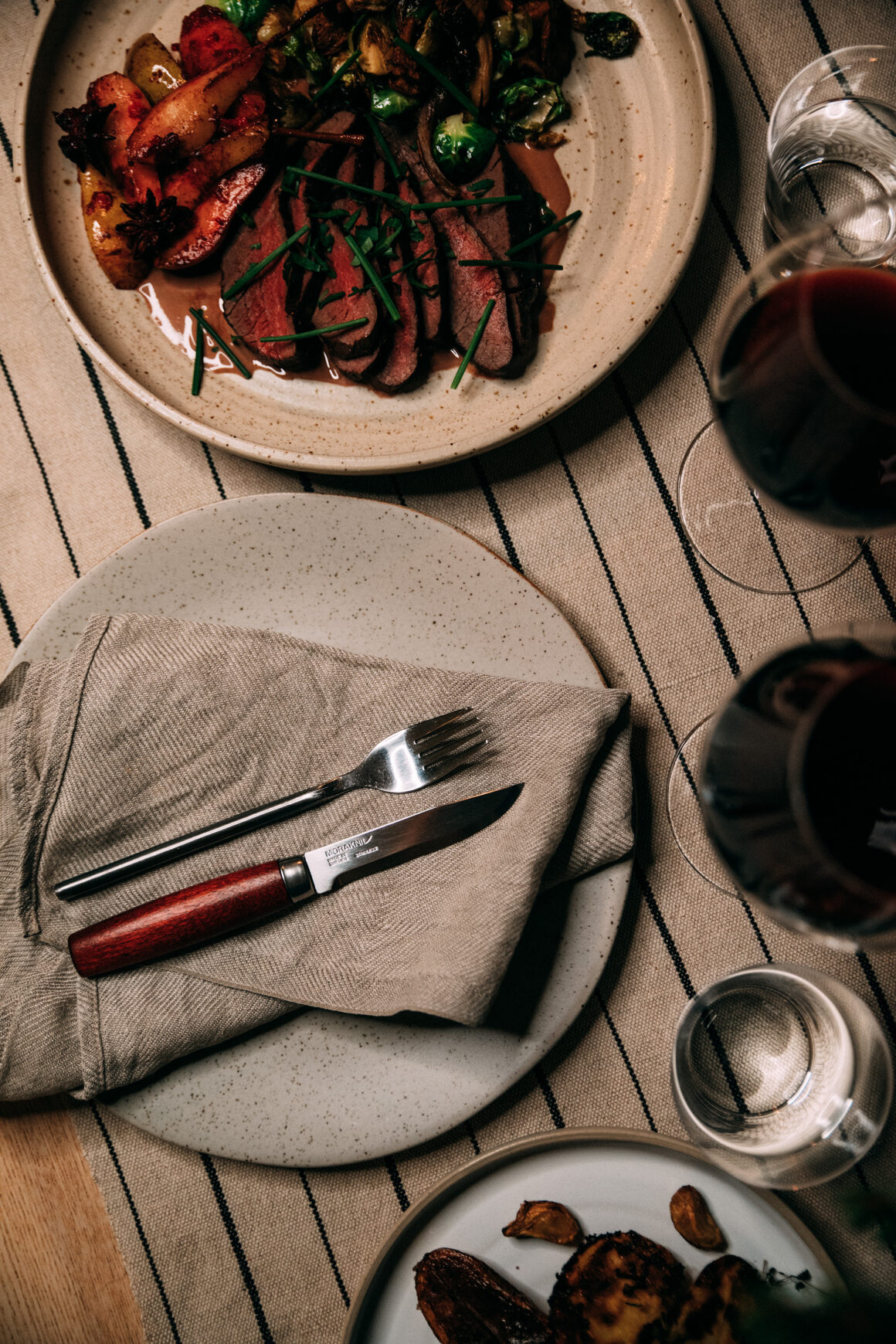 Medan han lagade mat så hällde jag upp varsitt glas Beaujolais eftersom det var Beaujolais Nouveau-premiär. Vi hade ingen nouveau hemma, och alla flaskor var slut på Systembolaget, men det blev ändå ett litet firande. Och till maten blev det ett glas Merlot från Kloovenburg. Ett fynd för typ 80 kr i Sydafrika, men som flitigts förpackats i resväska och åkt med hela vägen hem. Jag tackar min Coravin för att kunna hälla upp enstaka glas utan att öppna en hel flaska!