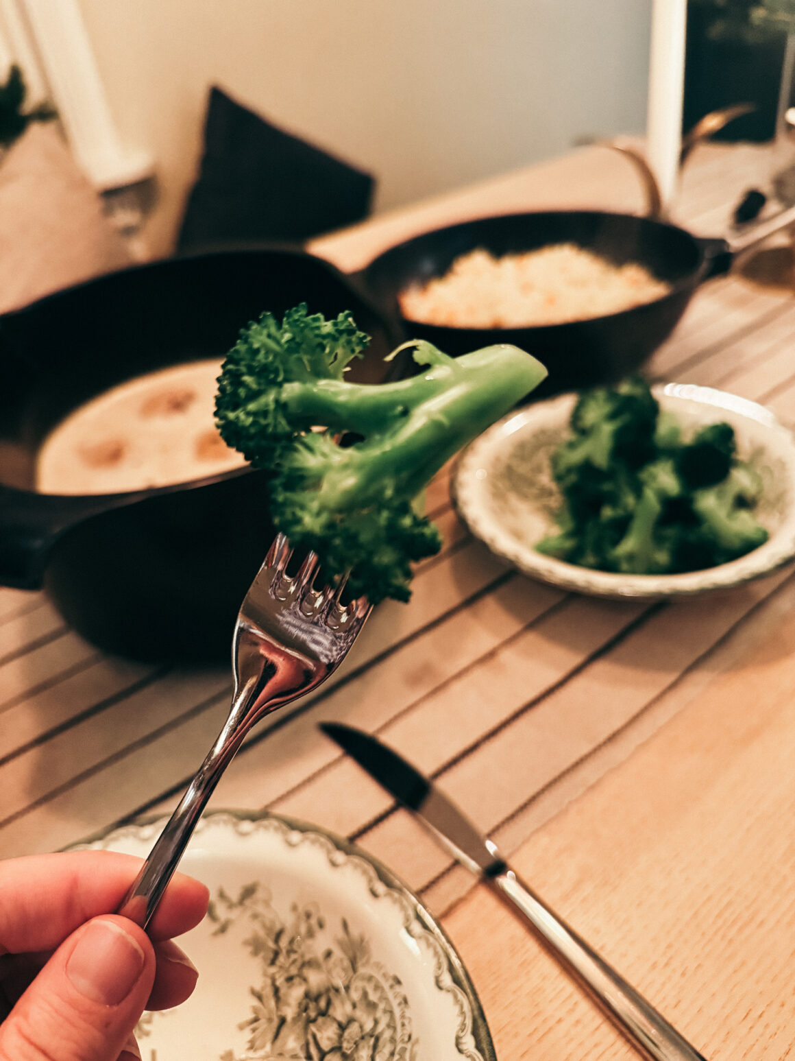 Anyhow. Vi går vidare till broccoli. Danny lagade mat (i vanlig ordning) och han gjorde fantastisk förvälld broccoli. En nypa socker i vattnet ger otrolig smak. Och salt förstås. Glöm ej!