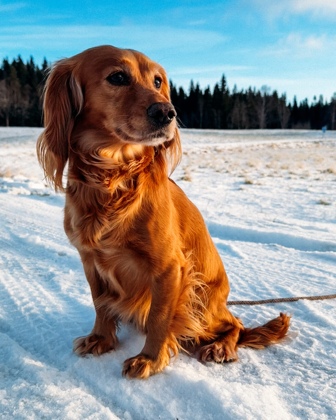 Vi hade henne hos oss en sväng tidigt i höstas också, men sedan drog jobbhösten igång och tillsammans med att hon sprang in i en stubbe och blev skadad och allt annat så var det inte läge att vänja en ny hund vid vårt liv. Rutinerna från så många år med Hazel har väckts till liv på nytt: upp för 40 minuters morgonpromenad i skogen med pannlampa i nattsvärtan. Dagsljus på lunchen. Reflektionstid längs grusvägar före kvällen. När jag har hund behöver jag göra tid för detta, och jag vill. Och det går! Jag gör det hela tiden. Men när jag inte har hund är det så mycket med den där tiden som “inte går”. Se där vilka sanningar man kan intala sig själv. Jag har många fler att rannsaka, precis som de flesta människor.