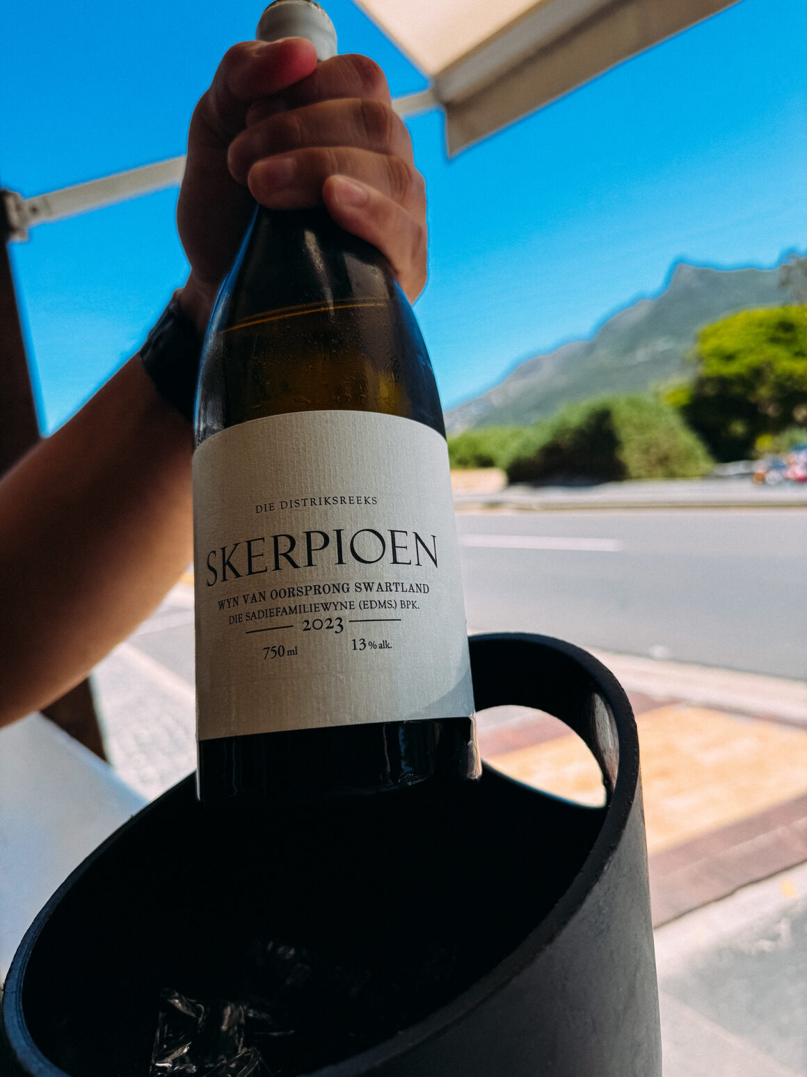 “Åh, bor ni på Chapmans Peak Hotel? Ni måste prova deras calamari och prawns” har jag fått höra flera gånger. Så det gjorde vi redan första dagen. Perfekt lunch, och till ett glas vitt från ikoniska Sadie family i Swartland. Vi besökte inte dem när vi var till vinregionerna, men här är alla vingårdar vi besökte i Stellenbosch, Franschhoek och Swartland.
