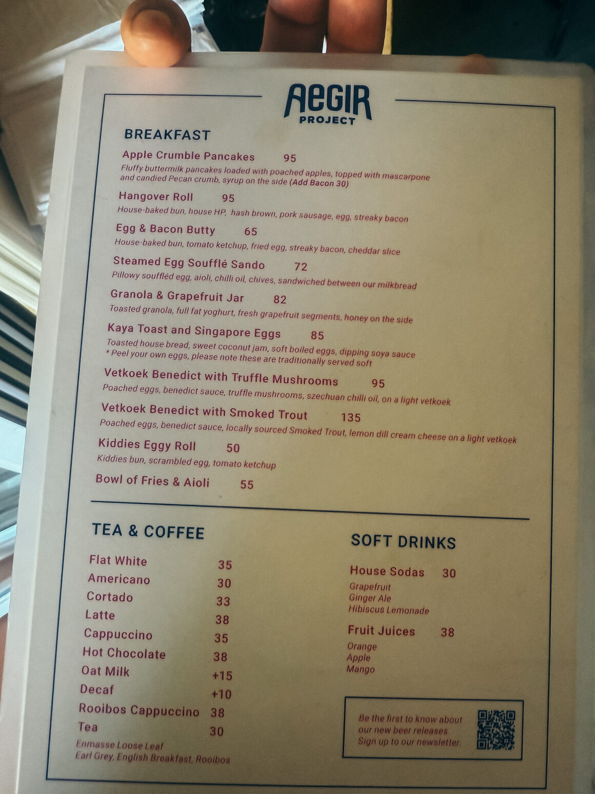 Godaste frukosten, näst efter den på Dorp hotel, var på Aegir Project vilket egentligen är ett micro brewery. Frukostmenyn var kul, bara det ett gott tecken. Långt från det vanliga tråkiga. Vi beställde in flera olika grejer, menyn var för bra för att inte missas.