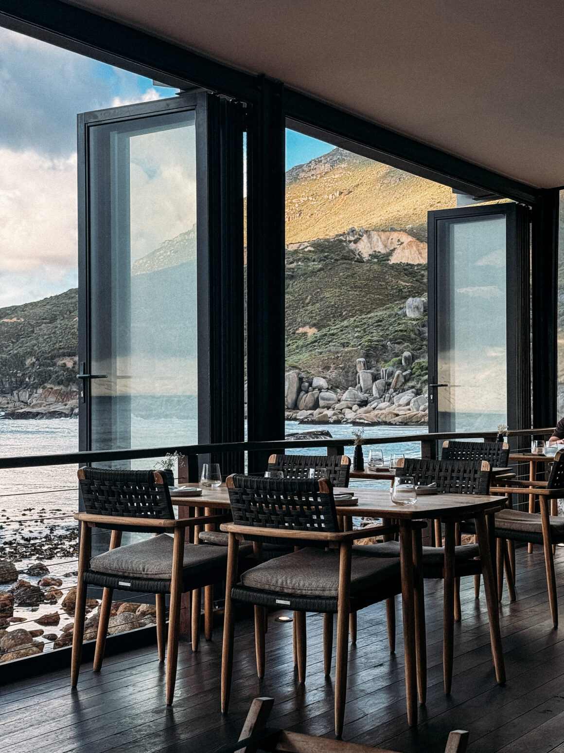Vid foten av Chapmans Peak Drive, där vägen slingrar sig mellan berg och hav, ligger Tintswalo Atlantic – ett boutiquehotell som nästan sitter fast i klipporna ovanför Atlanten. Här finns också en av Kapstadens mest omtalade restauranger: Chefs Warehouse at Tintswalo Atlantic. Vi hade upptäckt detta ställe lite för sent för att egentligen få bord, men min kille är den envisa typen och fick ett bord bakvägen.
