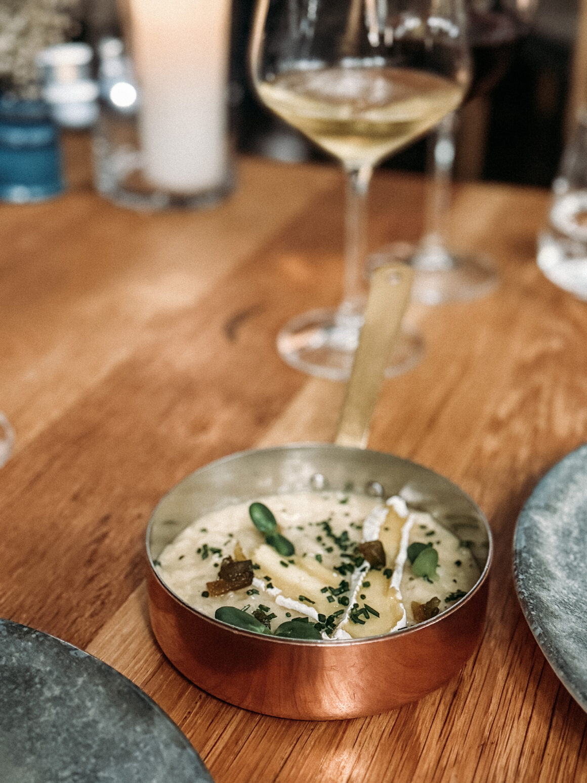 I Franschhoek åt vi på Chefs Warehouse La Maison och nu, precis som då, serverades vi mellanrätter i fyra kapitel. Tanken är att det ska vara avsmakning utan prestige. Men, vi började ändå med caviar. Och faktiskt ett glas cap classique: Sydafrikas svar på champagne. Förslaget, en pairing med Dom Perignon kändes inte lika rolig på en plats som denna så vi valde den rebelliska vägen. Sedan serverades flera riktigt bra rätter, men höjdpunkten var risotton på slutet. Med ost och en otrolig pairing med en chardonnay från det vinhus som ägs av grundaren till Chefs Warehouse, och som tydligen bara finns på restaurang.