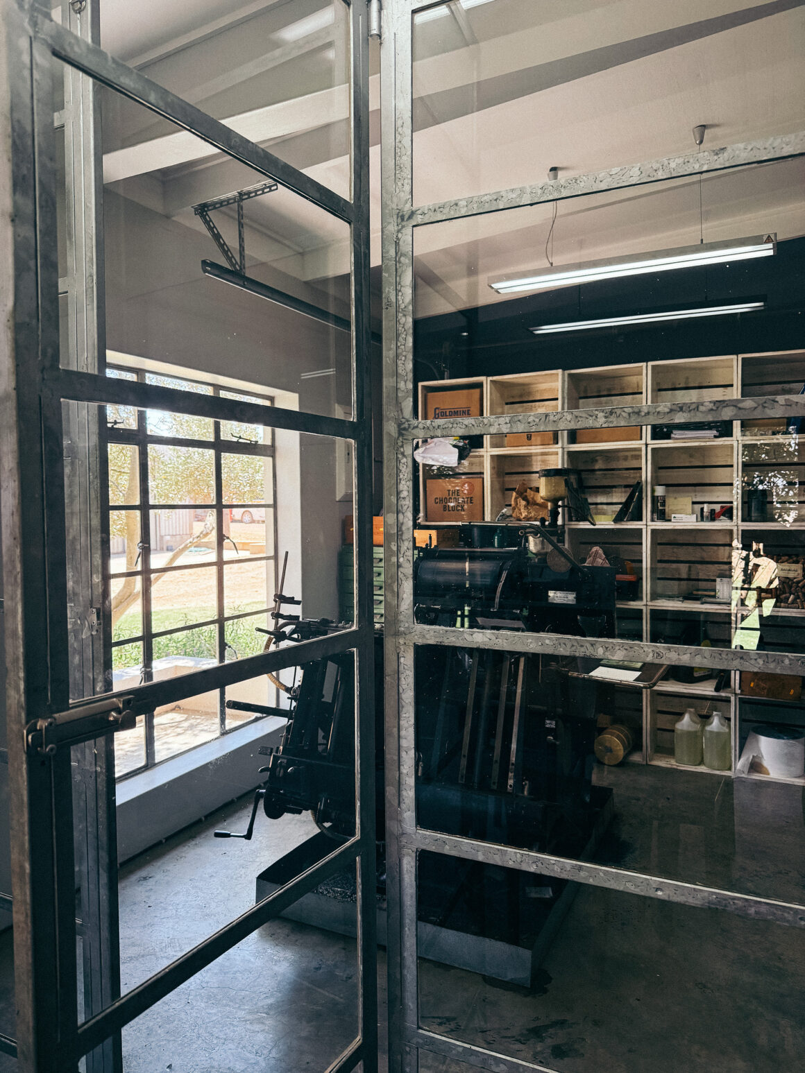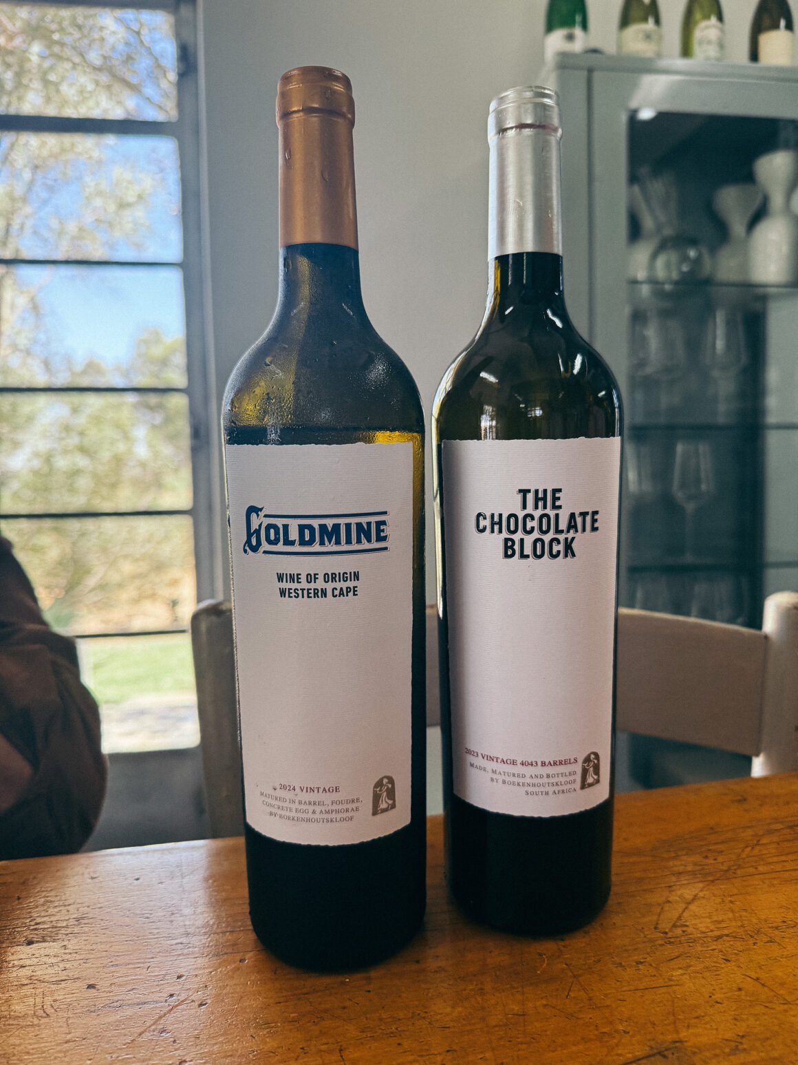 Efter en stund i hettan går vi in i den svala lilla byggnaden där tastings äger rum, och tar plats på knarrande stolar. Vi pratar fiske och surf med Eben, och provar fantastiska viner. Goldmine släpps på Systembolaget den 17 november och jag ska hänga på låset. Ikonen Chocolate Block brukar också finnas, men min favorit är Boekenhoutskloof Syrah från 2022.