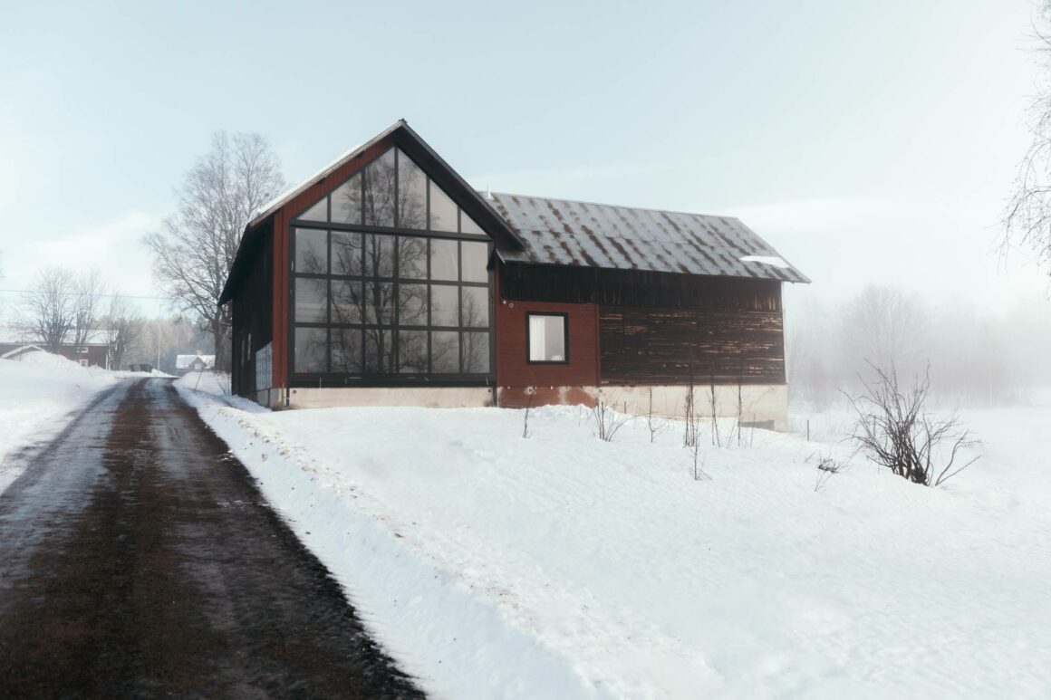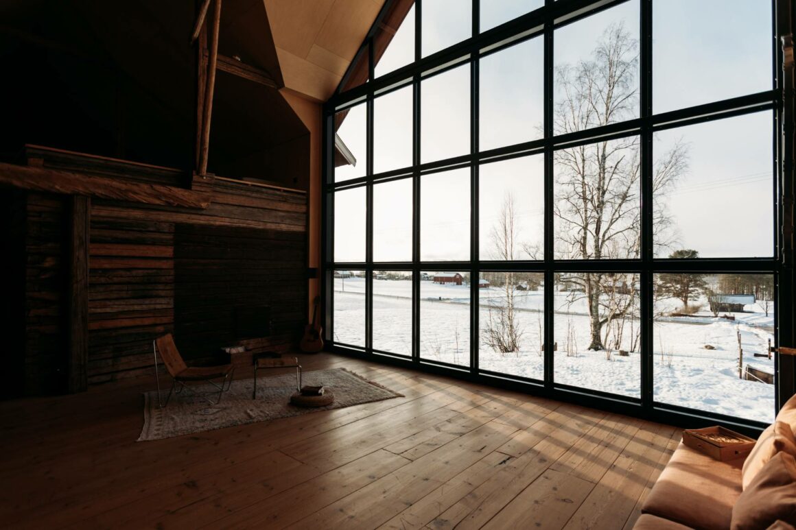 Jag nämnt fönstren i timringen många gånger. Men i ett nästa skede vill jag byta fasad på det hus jag själv bor, och sätta in andra fönster. Större fönster. Dubbla fönsterdörrar från sovrummet ut till altanen som ska gå runt hela huset, som vetter mot de soligaste väderstrecken. Jag vill känna friheten oavsett om jag är ute eller inne. Köket ska byggas ut och den nya delen ska vara i glas. Inget uterum. Övergången ska vara sömlös.