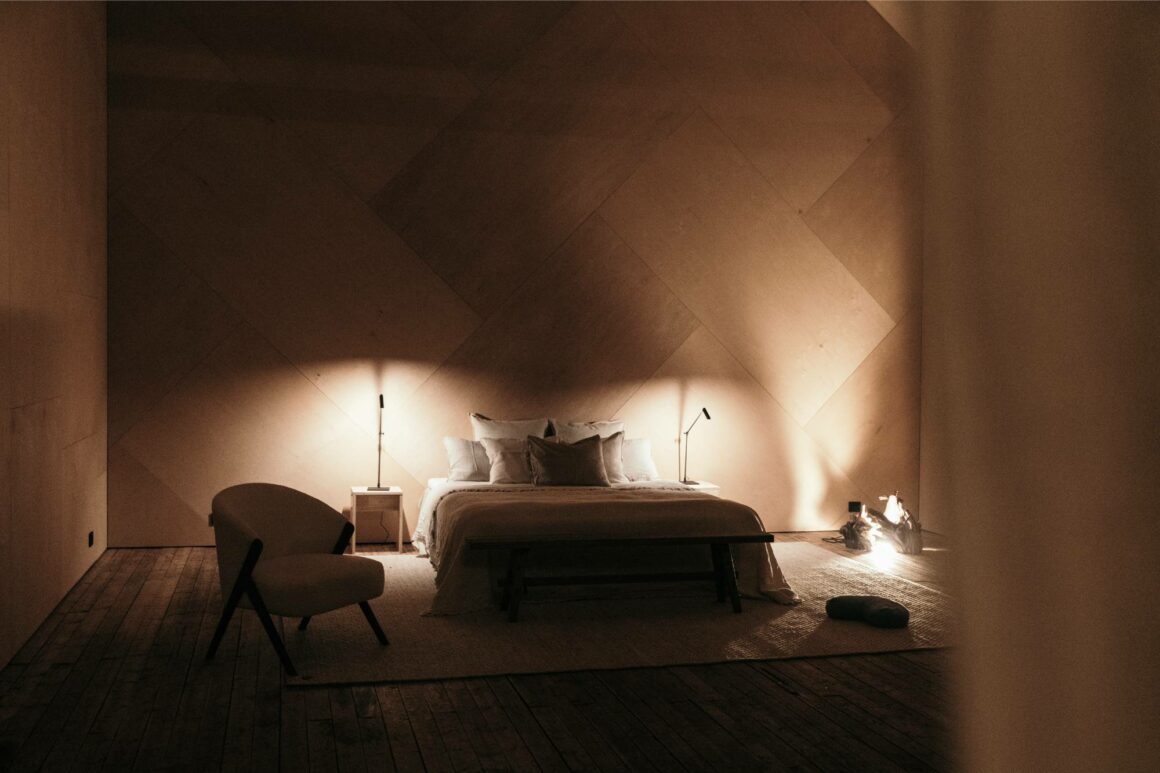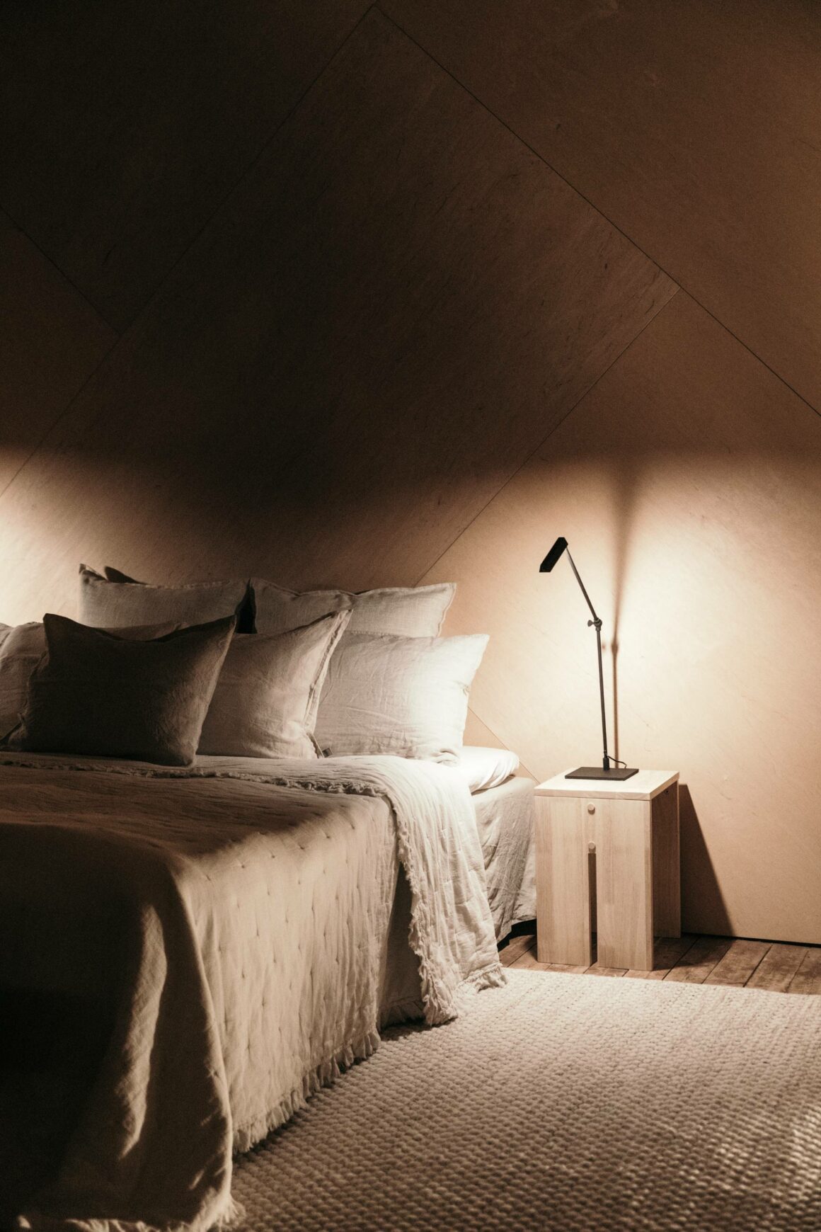 Min studio ska egentligen bara innehålla ett stort sovrum, och badrum. Vid entrén kommer det vara inbyggd förvaring, men så mycket mer än så vill jag inte ha. Absolut inget pentry, det blir bara stökigt. Det ska vada vilsamt och det ska finnas en kamin. Det ska vara ljuvligt att sova här. Under norrskenet. Sedan vakna intill forsen. Till morgonljuset. Och utsikten mot fjällen.