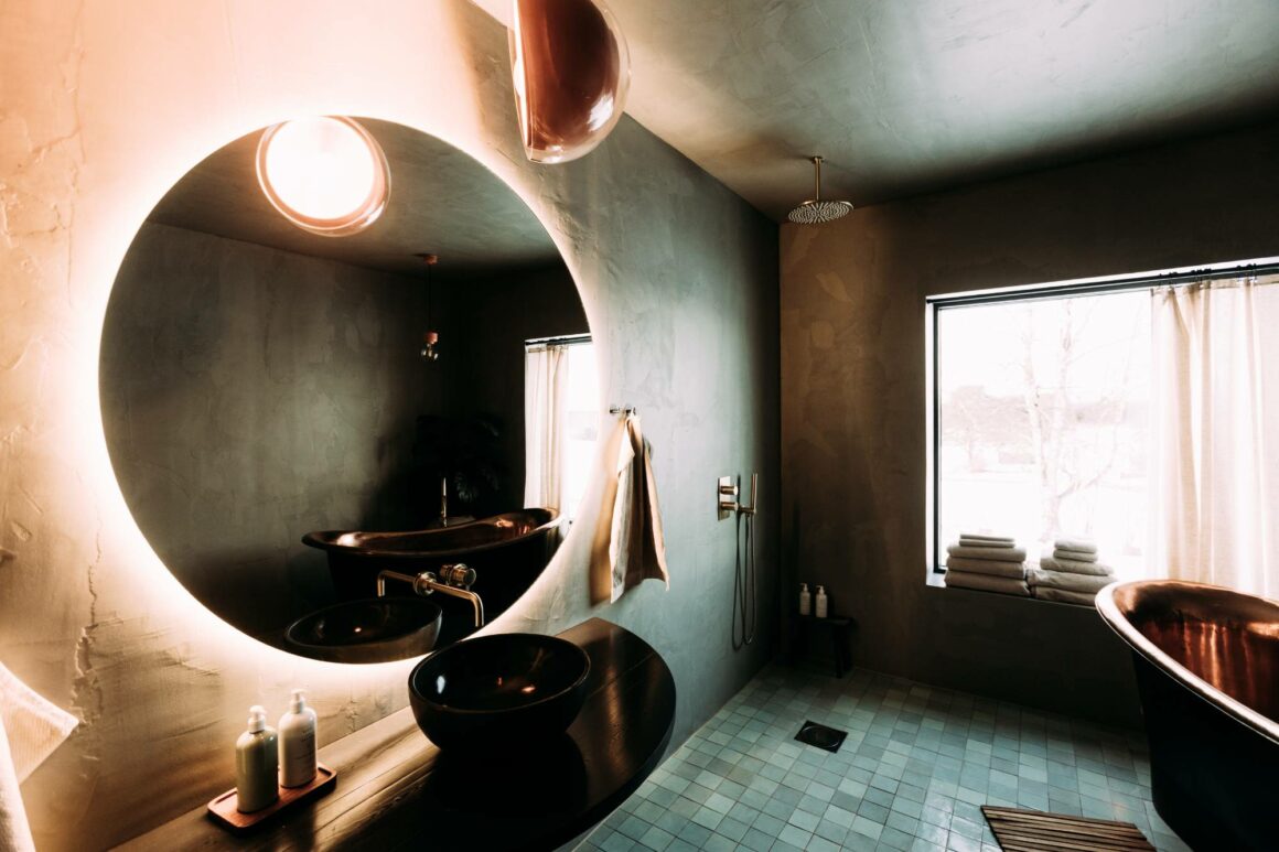 Badrummet är en perfekt mix av rå känsla och designfinsh. Jag tycker väldigt mycket om känslan av microcement, i kombination med designelement. Precis så har man gjort i Sunannhed och jag är 100% inspirerad att ta detta rakt av hem till mig. Ibland blir jag nedröstad av hantverkare som inte tycker det är en bra idé designmässigt, men av de genuint härliga människorna som står bakom denna otroliga lada har jag fått rådet att om en hantverkare säger en sak – så kan man med fördel tänka precis tvärtom. Allt som ”inte går” går visst. Allt som ”men ska du verkligen” ska jag absolut.