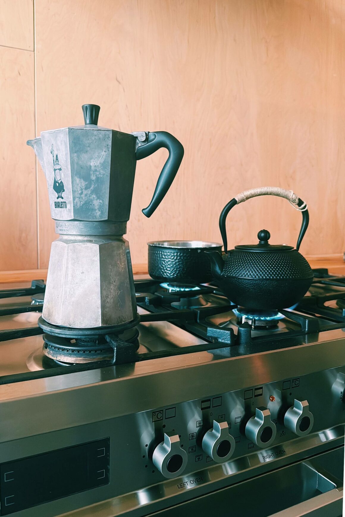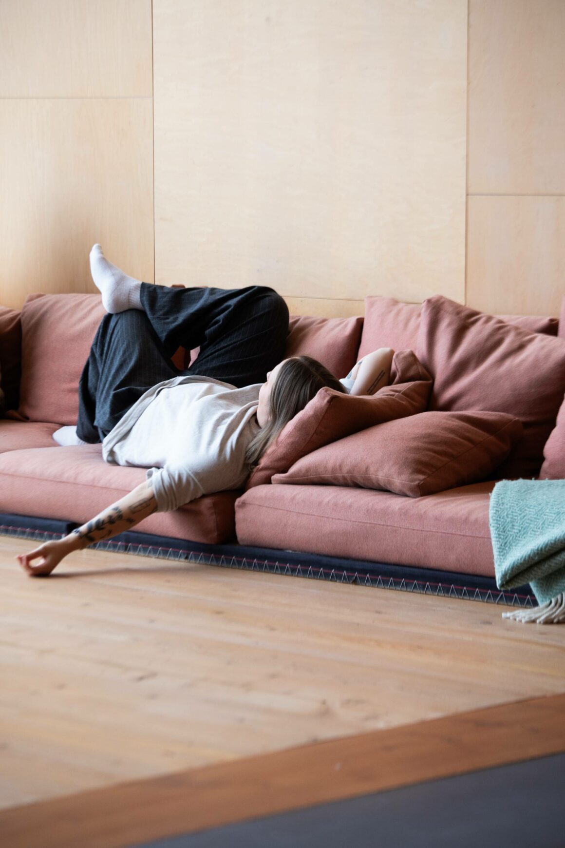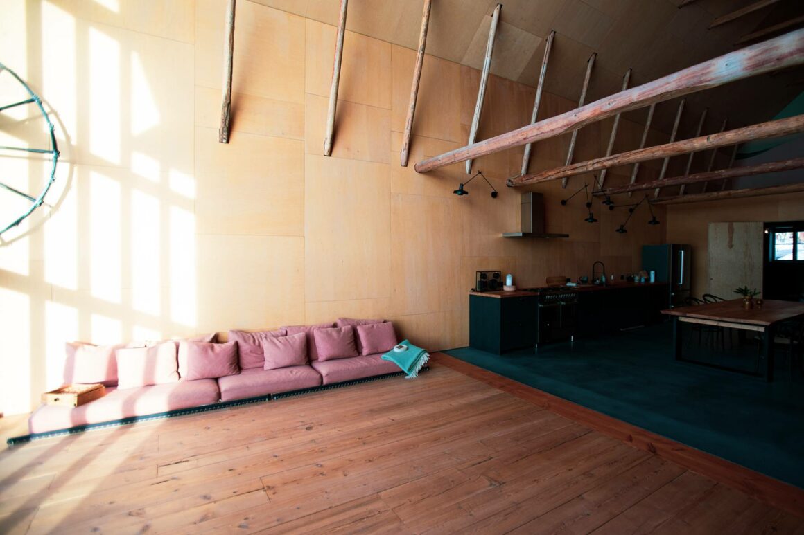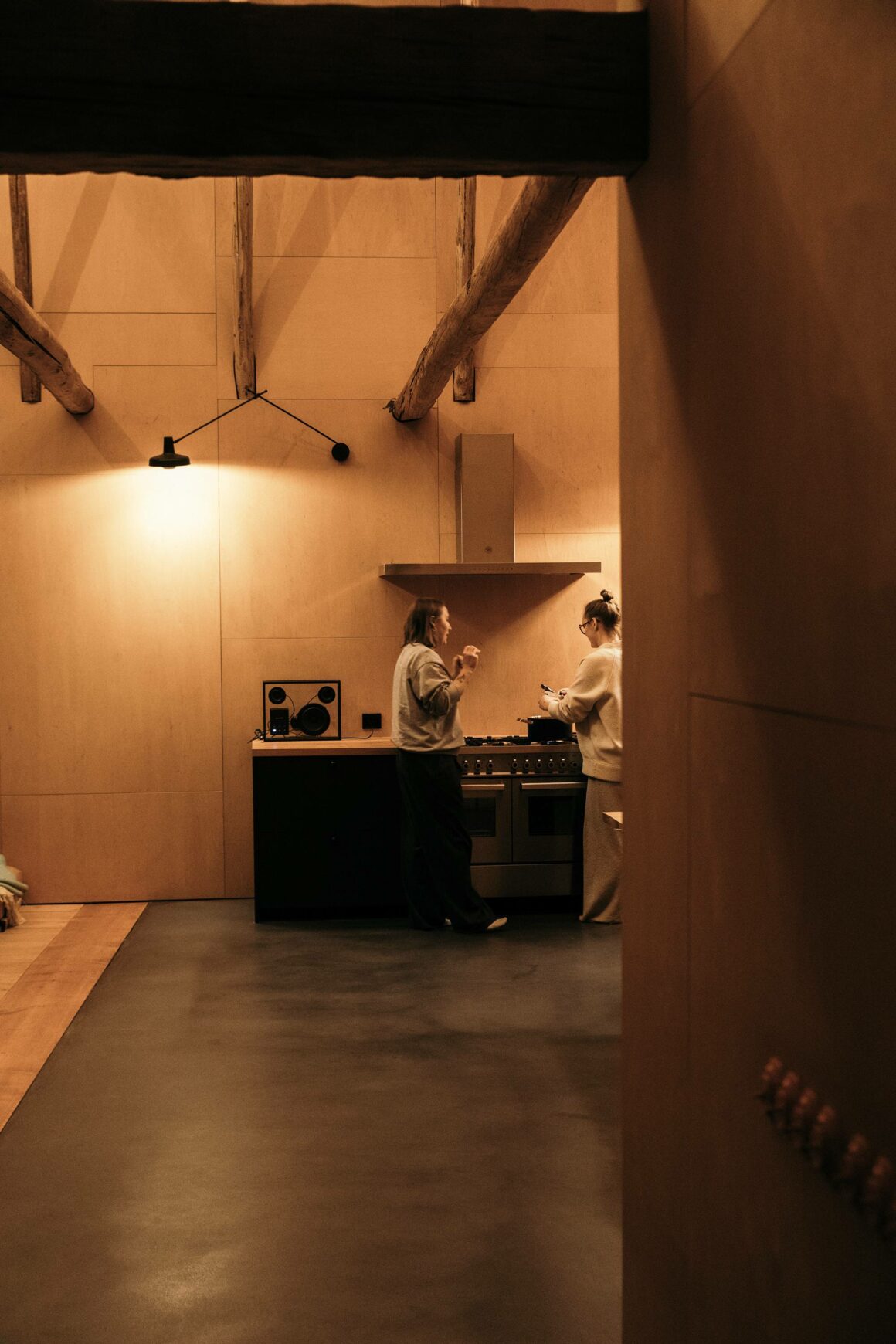 I Sunnanhed har man låtit timret synas på insidan, trots att de är i olika nyans. I kombo har de en slags plywoodskiva, som ger ett råare intryck. Det är dock ingen vanlig plywood nu när jag förhört mig om det, utan väldigt många kvadratmeter snickeriplywood – som monterats till olika mönster i olika utrymmen.