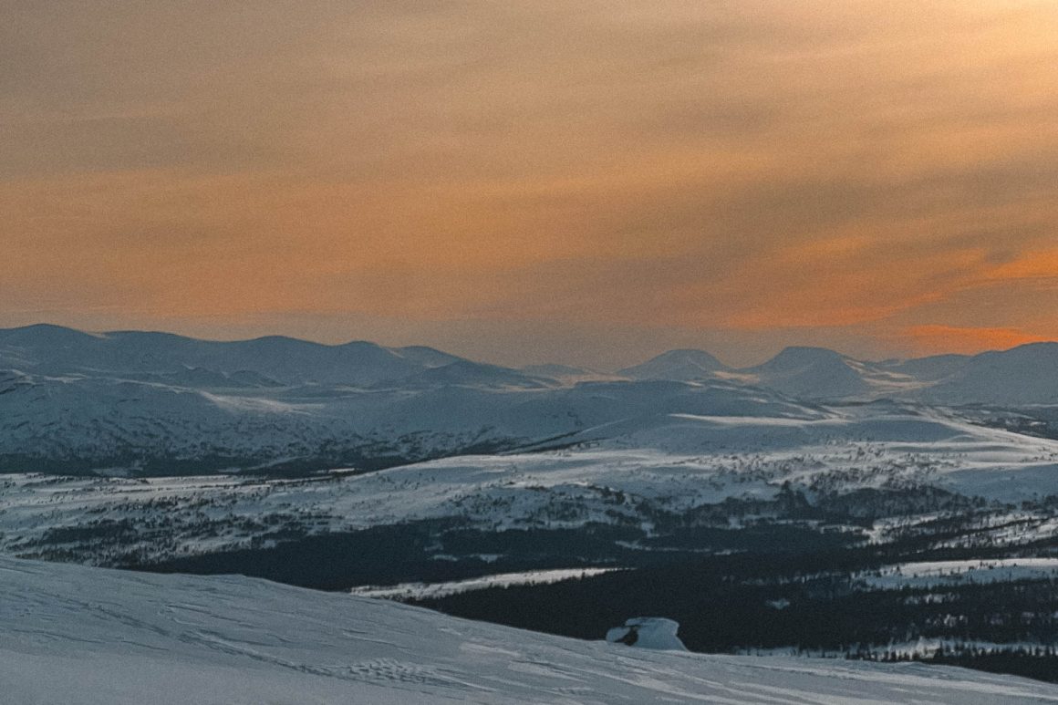 Det är i mars som energin räcker till flera saker. Några svängar i skidbacken med lunch. Lite jobb däremellan. Och sedan en kvällstur med solnedgång efter middagstid. Gå topptur efter jobbet kanske? Gärna upp till Trillevallen för där kan man gå in i den lilla nödstugan och värma upp fötterna. För mars kan vara riktigt kall också, särskilt när solen gått ner. Och om man turar upp i solnedgång och ser fjälltopparna mot persikokulissen, ja då blir det mörkt och kallt på nedvägen.