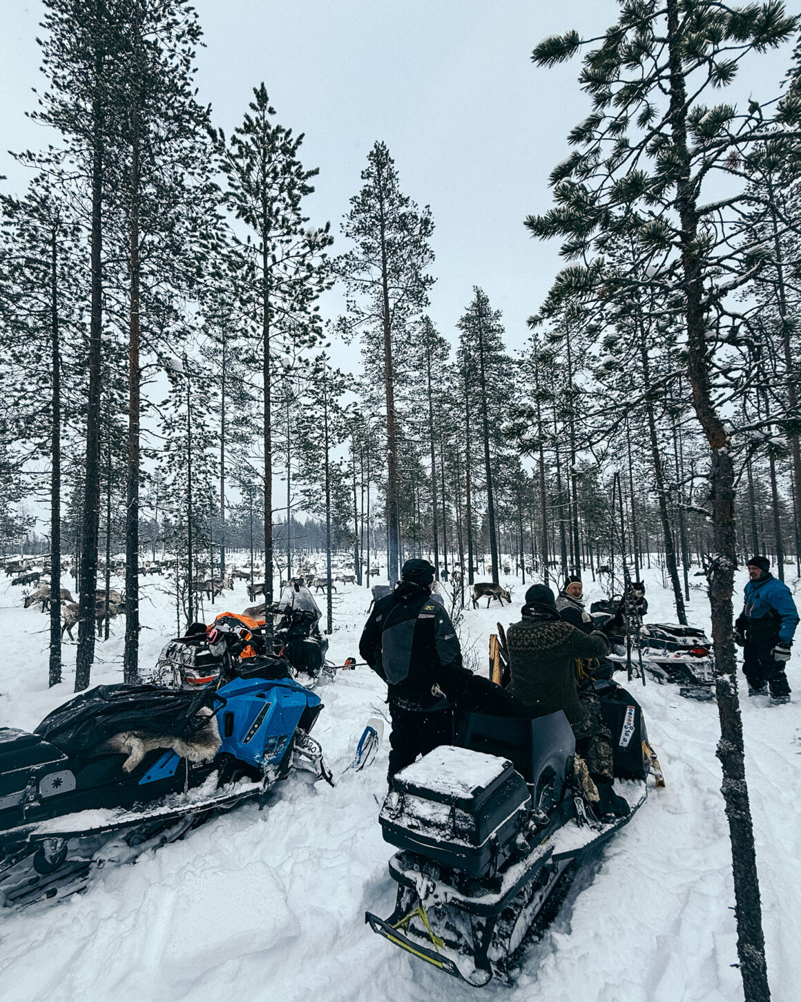 På lördagen skulle vi få vara med och samla in renar, som sedan skulle förflyttas – drivas framåt med snöskoter – runt en mil mot området kring rengärdet där de skulle vara över natten. Och på söndagen skulle de återigen samlas in på morgonen för att drivas in i själva rengärdet. Sedan skulle det bli en mindre renskiljning med fler som anslöt för att arbeta i gärdet.