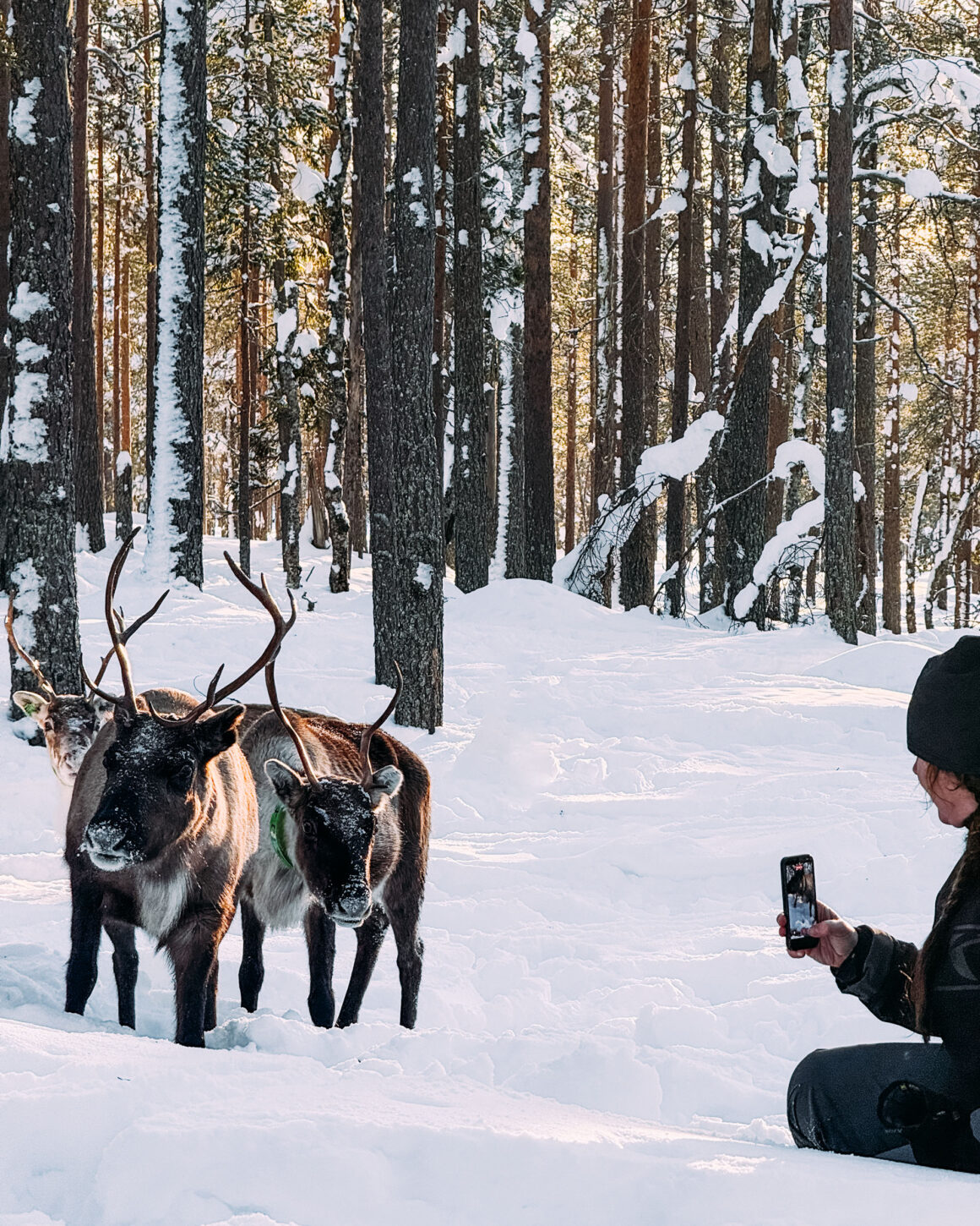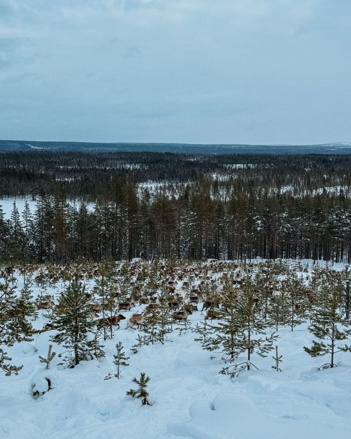 På söndagsmorgonen packade vi in oss i bilen ännu tidigare än dagen innan, och körde mot rengärdet där vi skulle utgå från. Det var -18 grader men strålande vackert. Vi letade upp renarna på nytt. Kryssade mellan tät skog och hittade spår. När renhjorden var samlad påbörjades förflyttningen av dem mot själva gärdet: som hagar i olika sektioner.