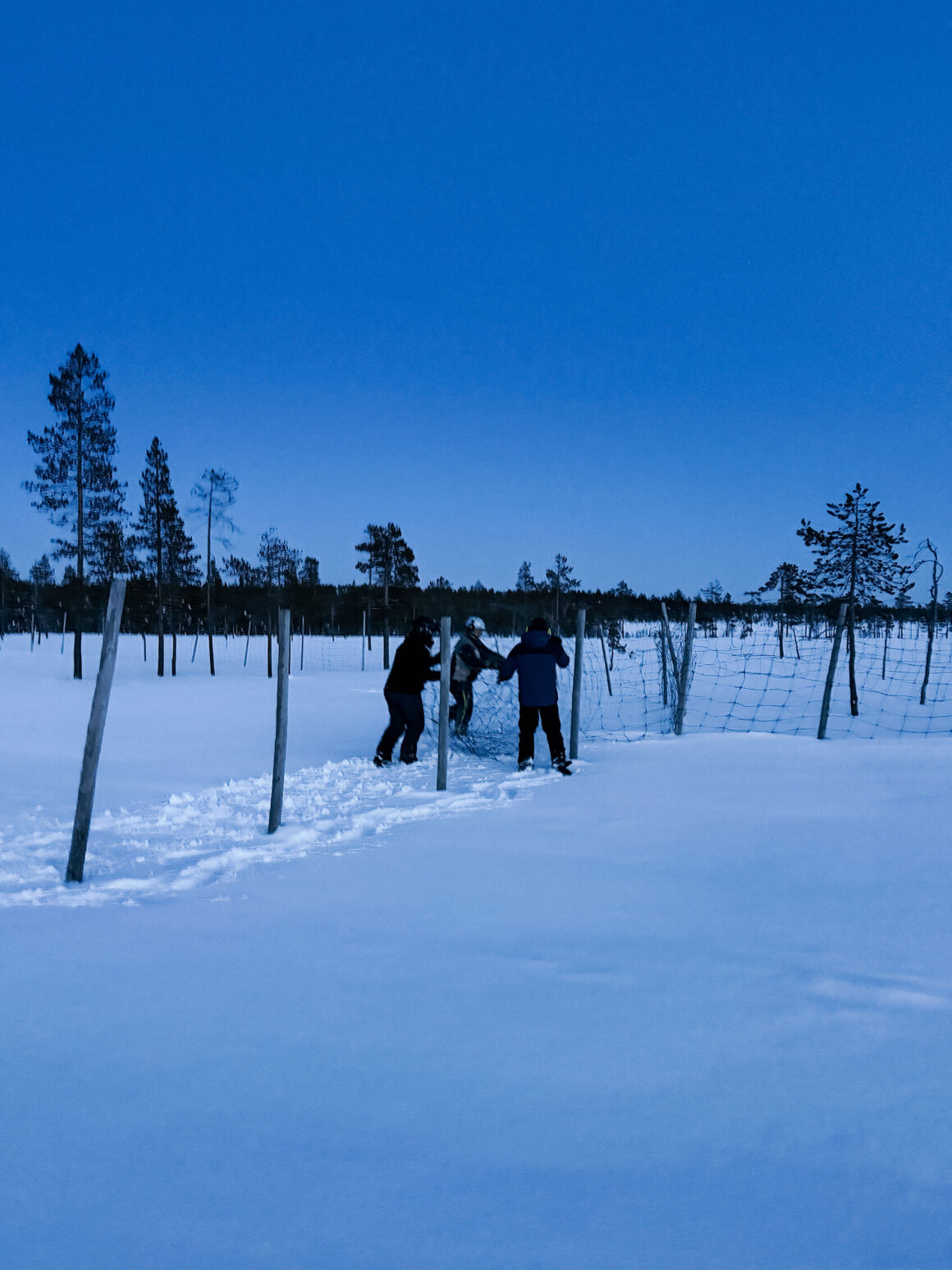 Solen gick ner bakom träden och vi jobbade fram tills det blev mörkt. Vi var en 6-7 personer som var med på lördagen. Jag och Danny med de nyfiknaste öronen med många frågor om drönare som arbetsredskap. Och om hur senan knäpper när renen flyttar på sig, så att de ska höra varandra även när sikten är dålig. Om att när de springer i cirklar så springer de alltid åt samma håll och det kan vara alldeles stilla i mitten. Den sista timmen från när solen gick ner tills att det blev mörkt och kallt så var vi på samma plats i skogen och eldade. För att lugna ner renen så att inte skulle vandra vidare när vi lämnade dem för natten.
