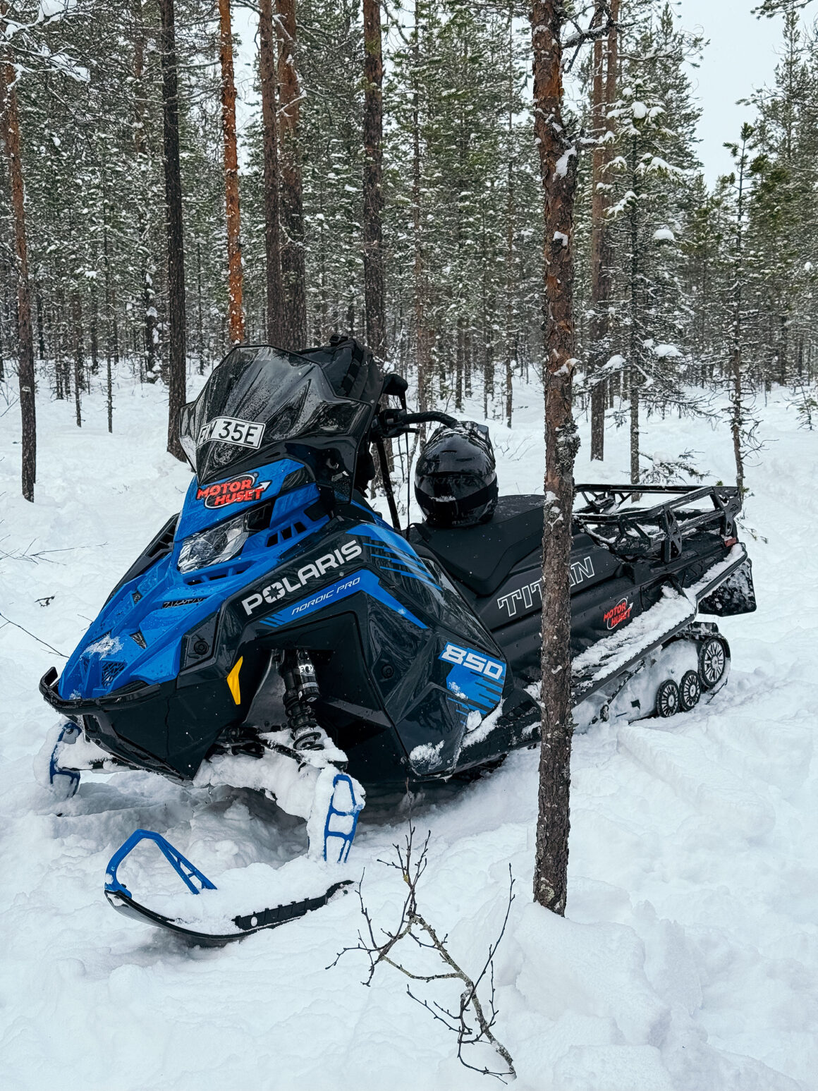 Jag ringde Motorhuset och frågade om de hade några lämpliga snöskotrar vi kunde använda för helgen, och i fredags lastade vi en Polaris Titan och en Polaris Nordic Pro på släpet. Två kapabla arbetsmaskiner.