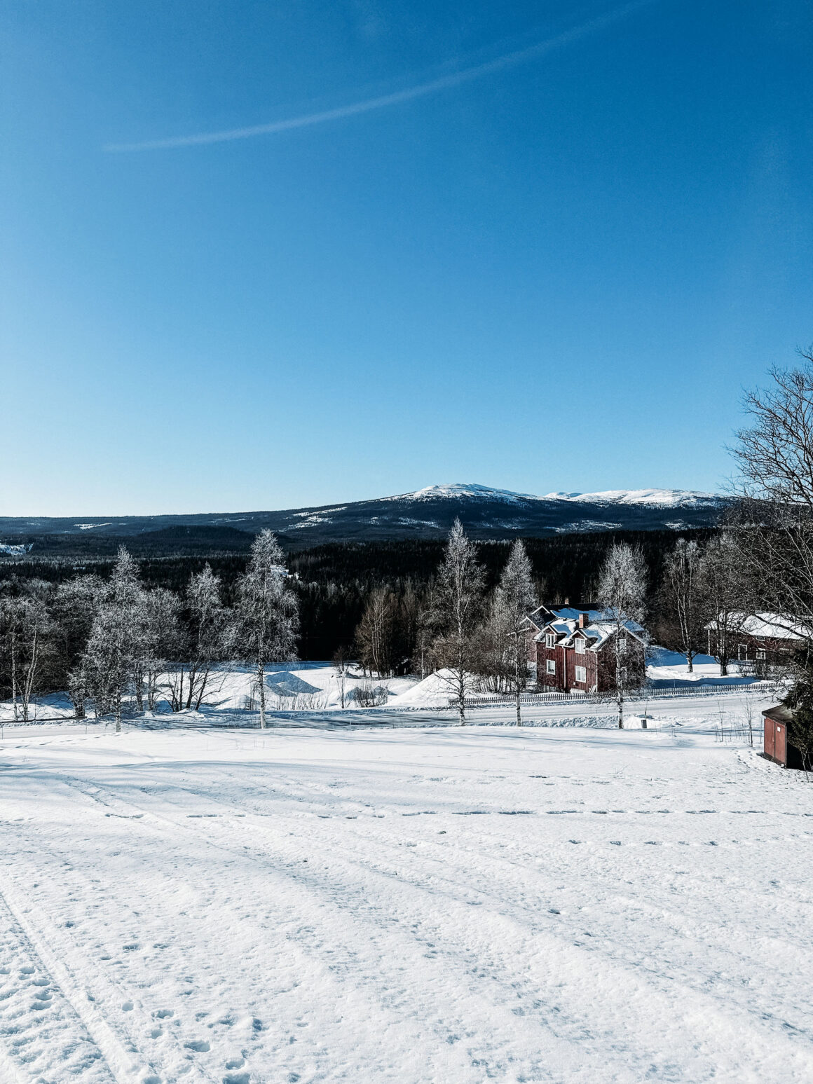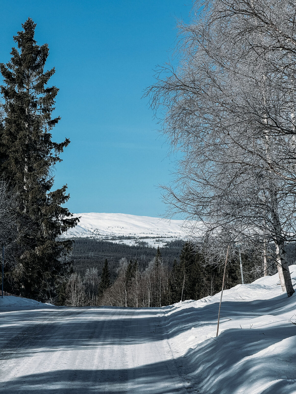 Det jag behövde mest av allt denna helg var vila, och sömn ingår i konceptet men jag har inte vältrat mig i sömntimmar. Däremot i sådant som ger mig energi i en annan form. När det blev söndagsmorgon upprepade jag konceptet kaffe i sängen, skrev lite i min skrivbok och såg ut över Åreskutan som badade i solsken. Sedan bestämde jag mig för långpromenad och tog skoterspåret åt andra hållet: mot byn.