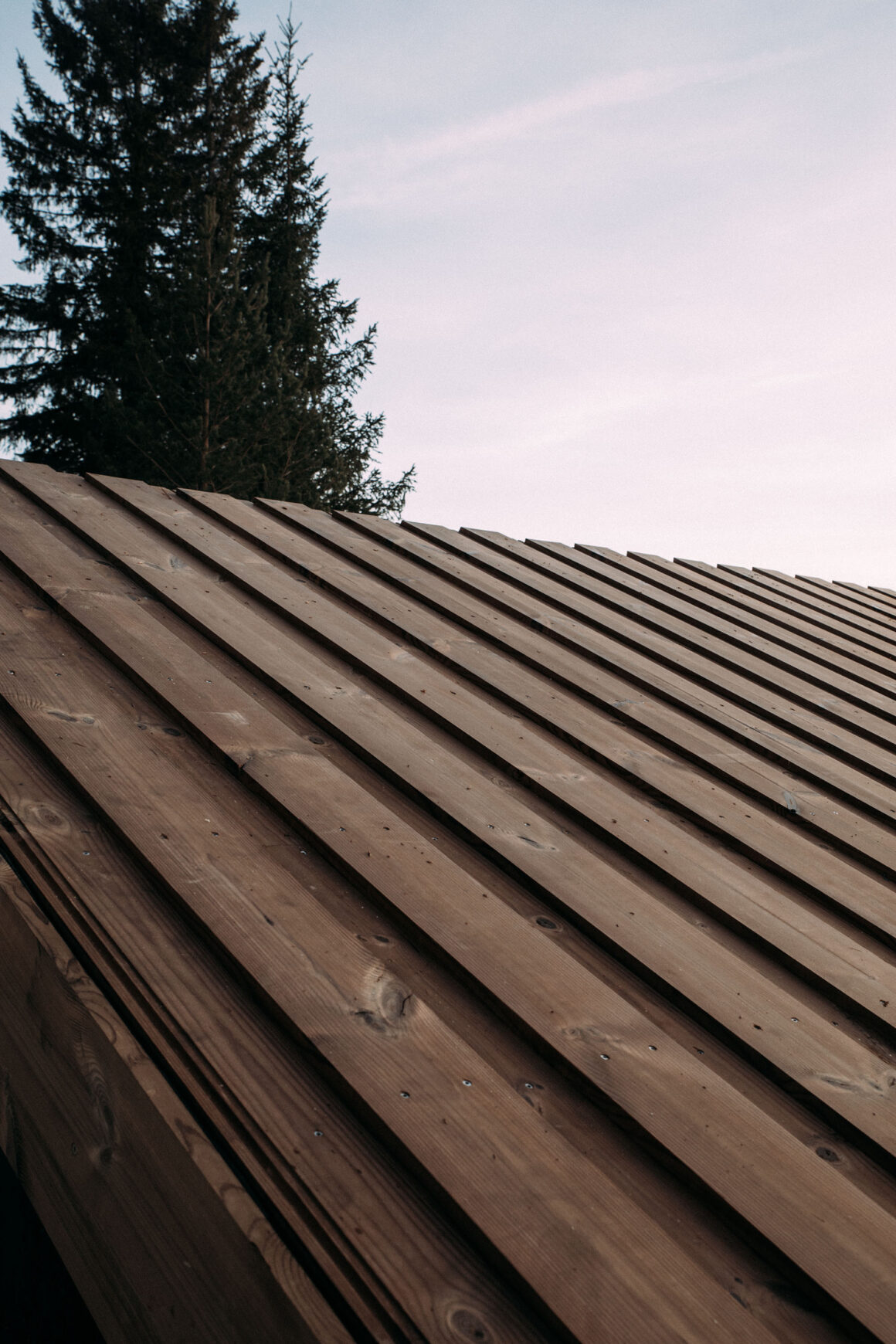 Samma material. Två helt olika uttryck. Båda fungerar lika fint i landskapet, vilket gjorde det klurigt för mig. Ett modernt trätak hade blivit ännu mer av ett statement i min fjällstudio, men ett mer klassiskt faltak med lockpanelutseende ger mjukhet och ett harmoniskt utseende.