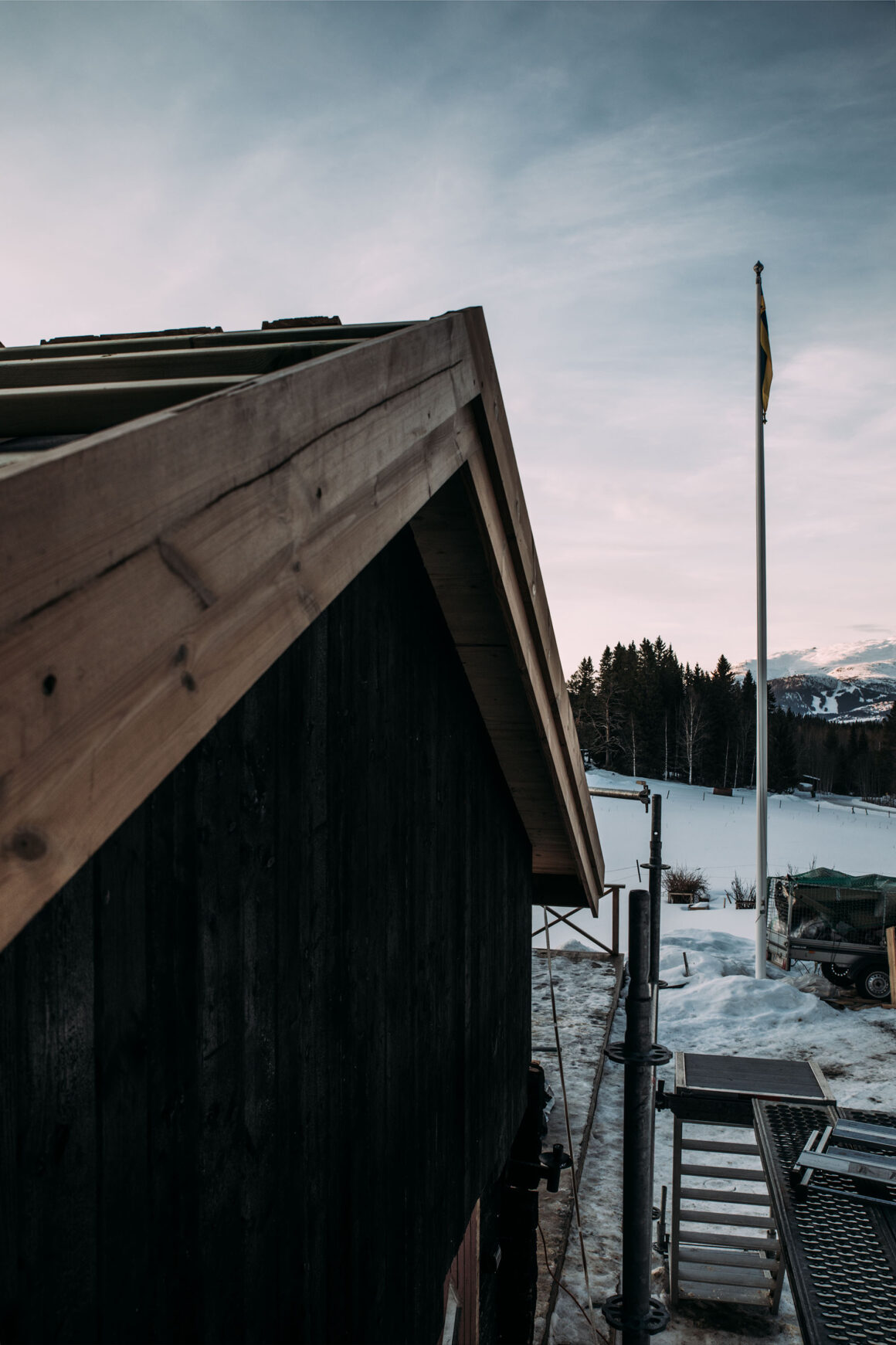 Resten får tiden sköta. Jag ser fram emot att träet ska åldras på egen hand. Just nu är det mycket pigment och nyansen är ganska varm – men resten av fjällstudion har mer svärta och har en kallare färg. Så jag ser fram emot att väder och vind kommer göra mitt faltak mindre mättat i nyans, och ett mer grånat uttryck. Det kommer bli riktigt, riktigt fint. Eller, det är det redan!