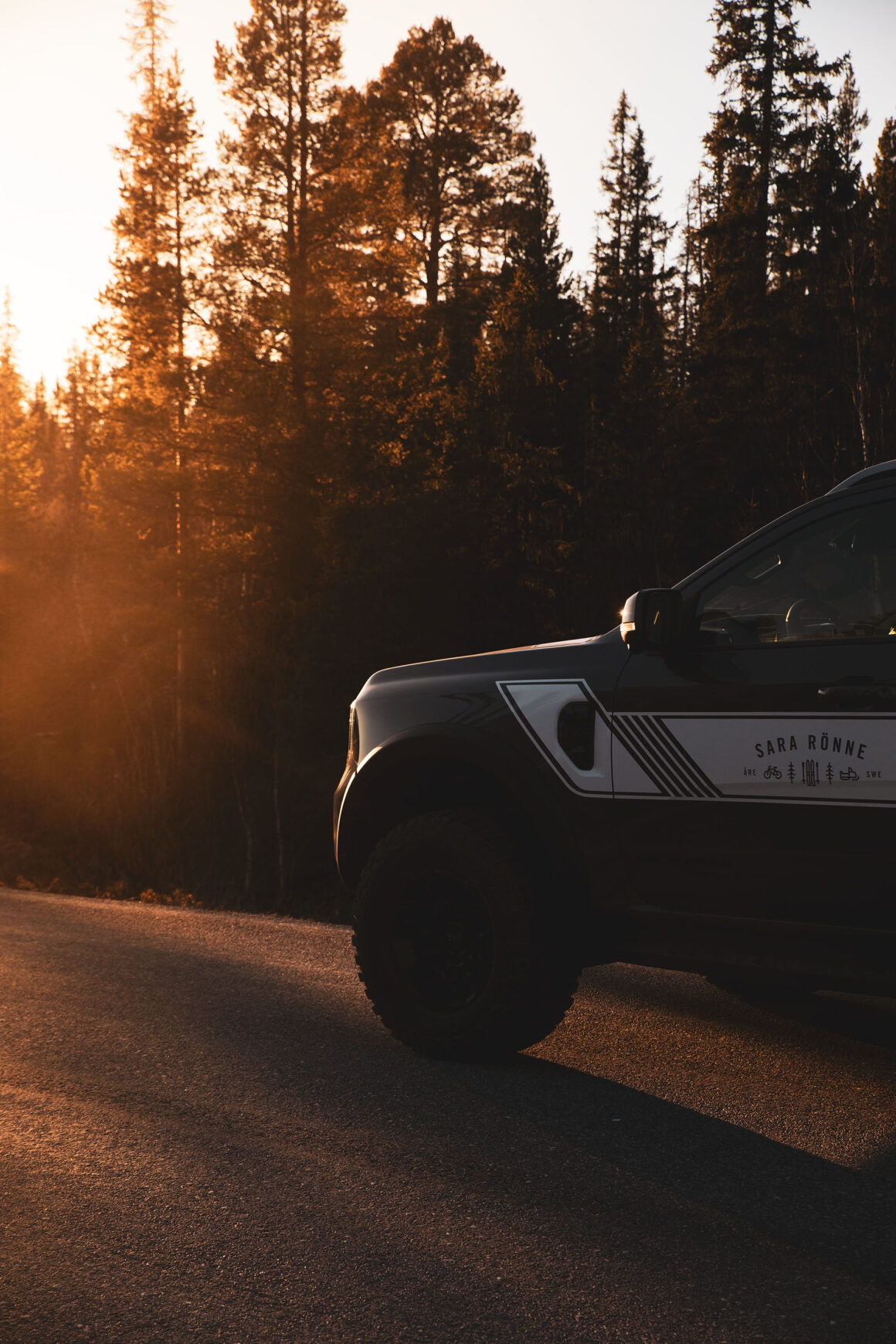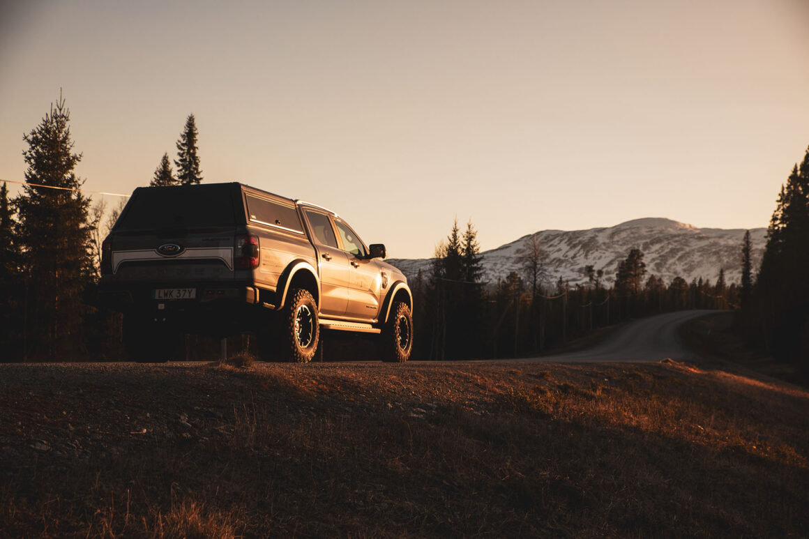 I lördags rullade min nya bil grusväg i Jämtland för första gången. Den blev lite lerig. Men blänkte ändå i solnedgången efter att ha farit fram längs vårens landsvägar cirka 70 mil. Min Ford Ranger PHEV som jag köpte från Hedin Automotive i Akalla (tack Jessica, världens bästa Fordmedarbetare som är proffs på pickuper) och som byggts om med extrautrustning hos Trucker i Nykvarn (tack Johan, världens bästa lösningsorienterare). En pickup som kan köras på både el och bensin alltså. Så att jag kan rulla tyst till byn, fram och tillbaka. Vilket är mina flesta körningar. Men: en pickup som också är redo för äventyr. Som kan lastas tungt och jobba hårt.